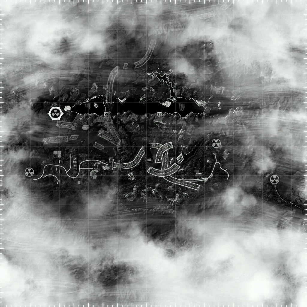 - ↑ The map of the Divide is located in the Big MT in Old World Blues, in the meteorological research center. Elijah mentions that Ulysses was interested in that particular facility; furthermore, it is mentioned in a terminal just outside the Y-0 research center that Hopeville was the location of an experiment gone horribly wrong.